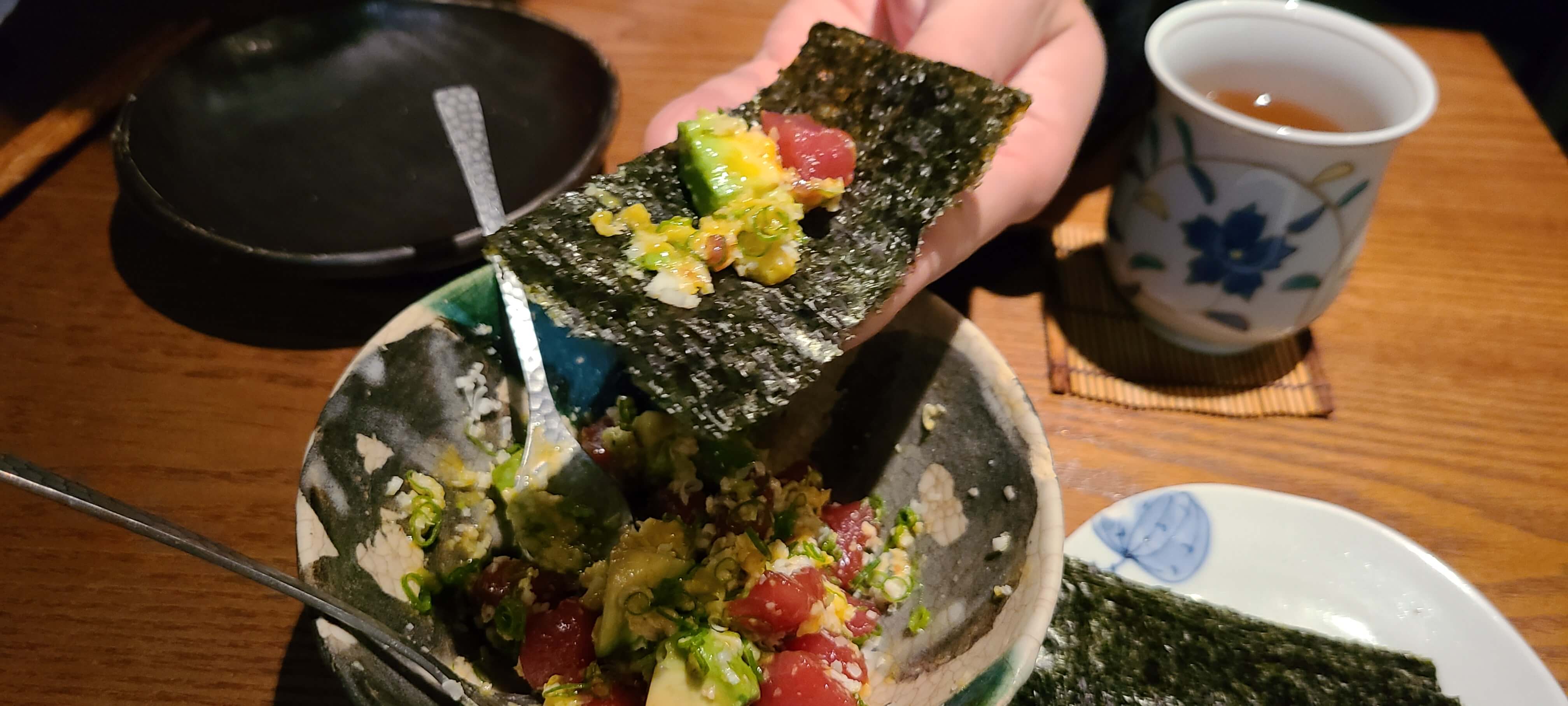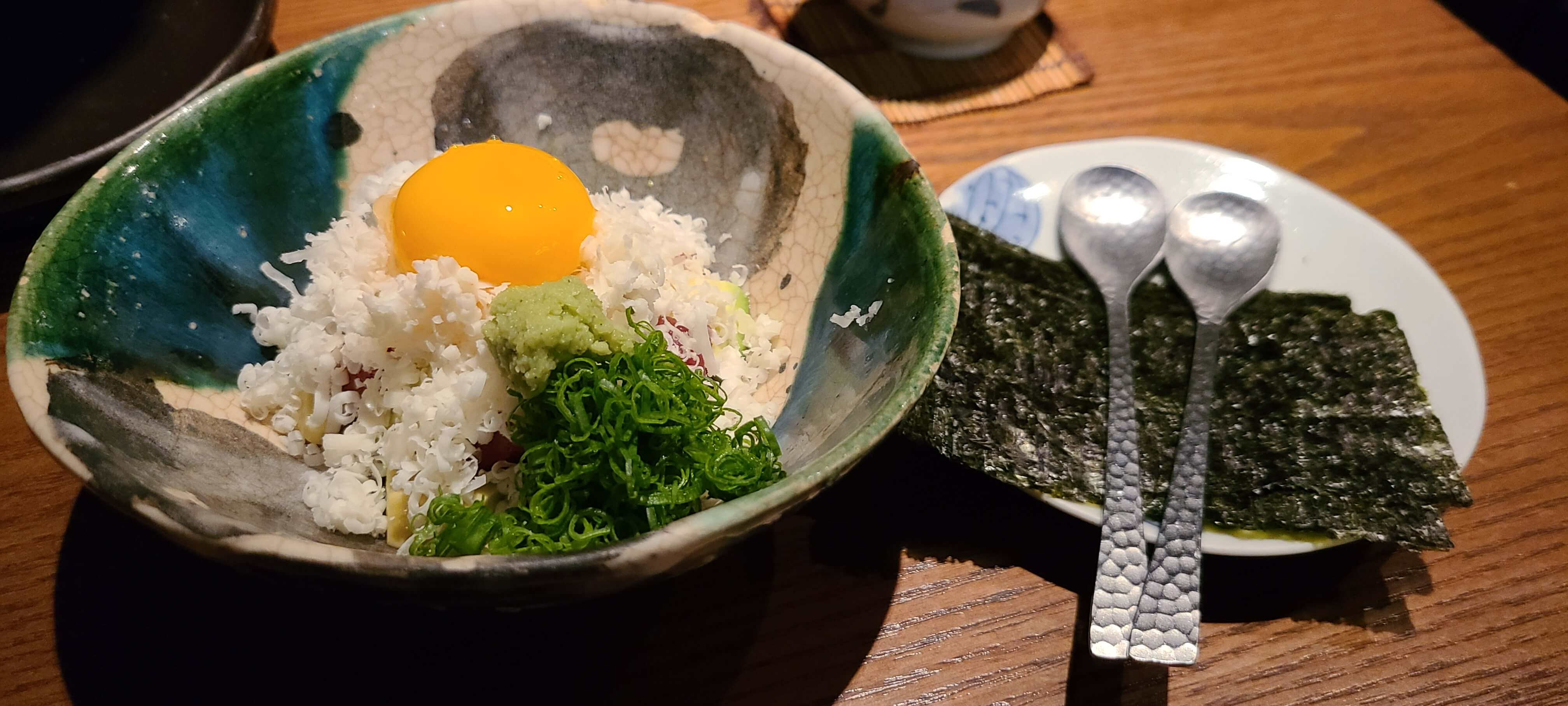 그리고 '마구로 치즈 아에' (참치등살, 아보카도, 르쁘아쥬 치즈, 노른자를 섞어 먹는 요리) 를 주문했습니다 ㅎㅎ