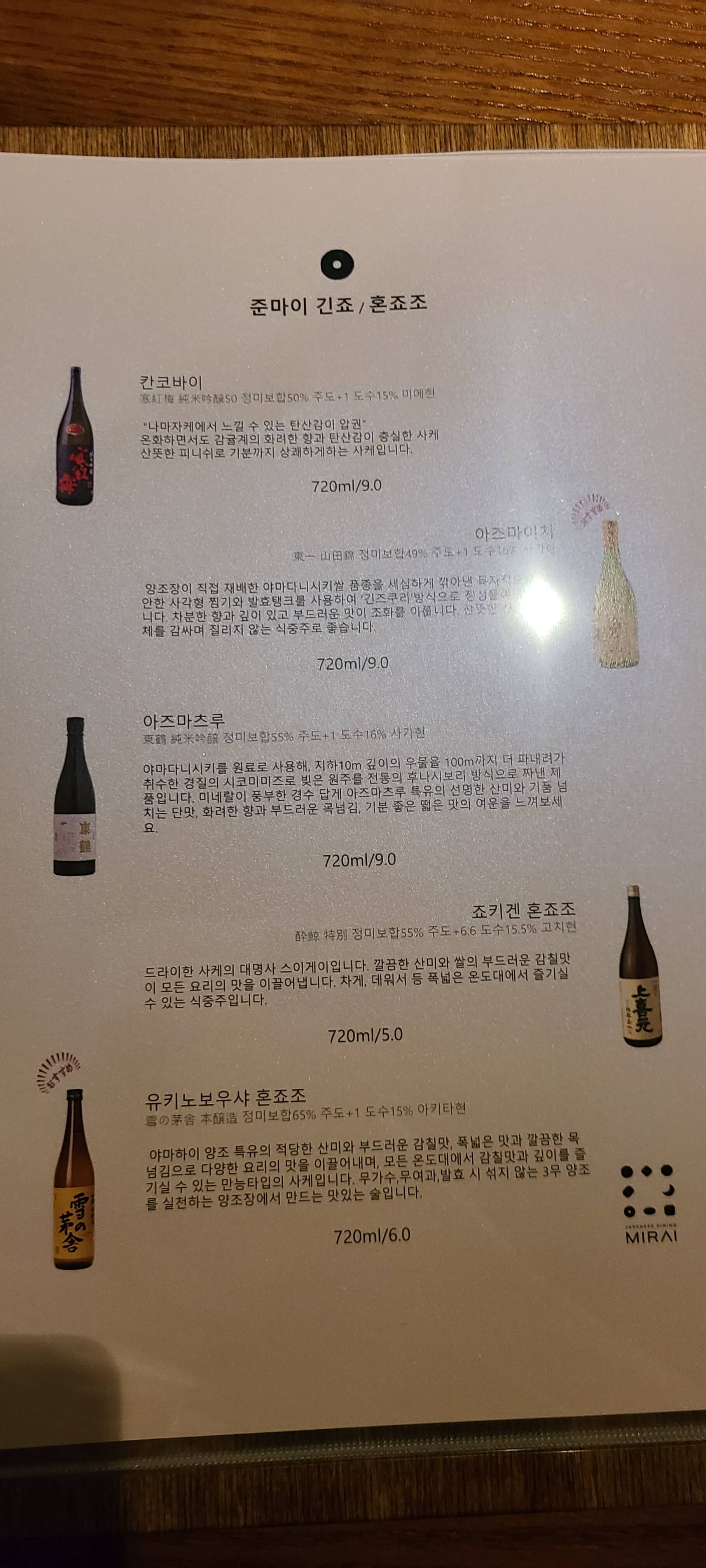 메뉴판 넘기자마자 바로 보이는게 대표 사케 ~