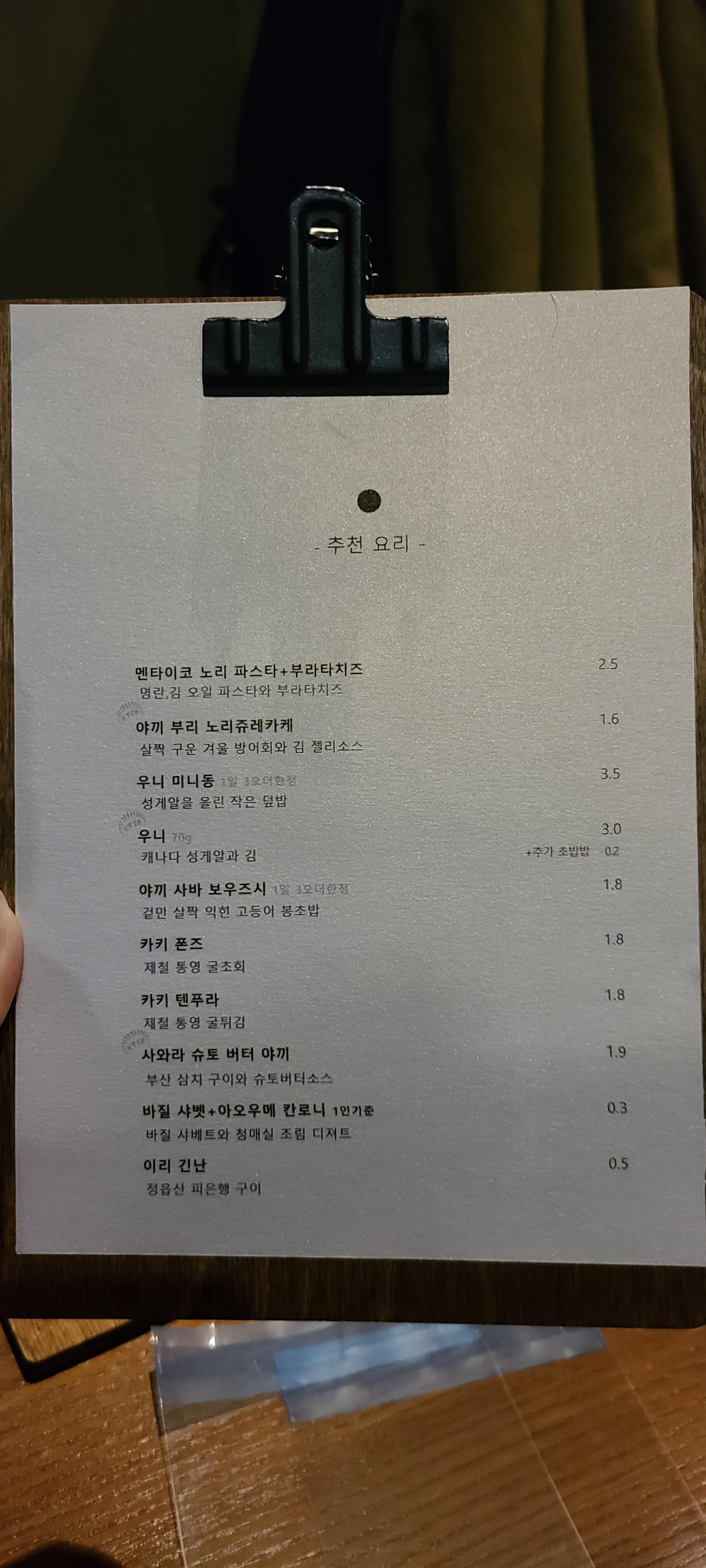 일반 메뉴판 외에 '추천 요리 메뉴판'이 따로 있다는 거예요~