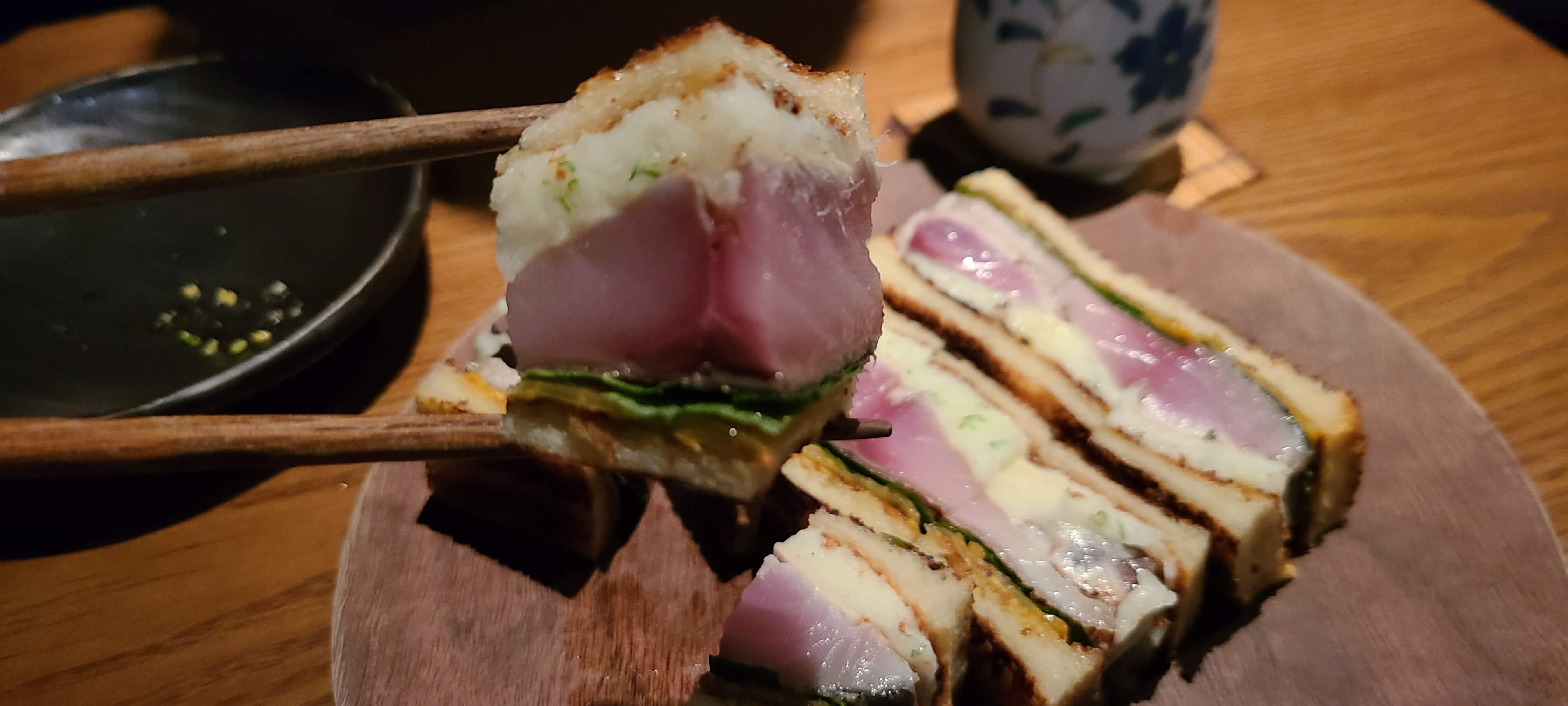 '사바 산도' (초절임한 고등어회와 감자샐러드가 들어간 샌드위치),