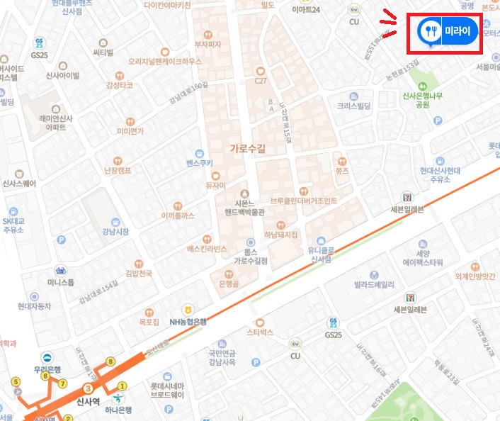 그냥 신사역과 압구정역 중간이라고 해둘게요 ㅋㅋ